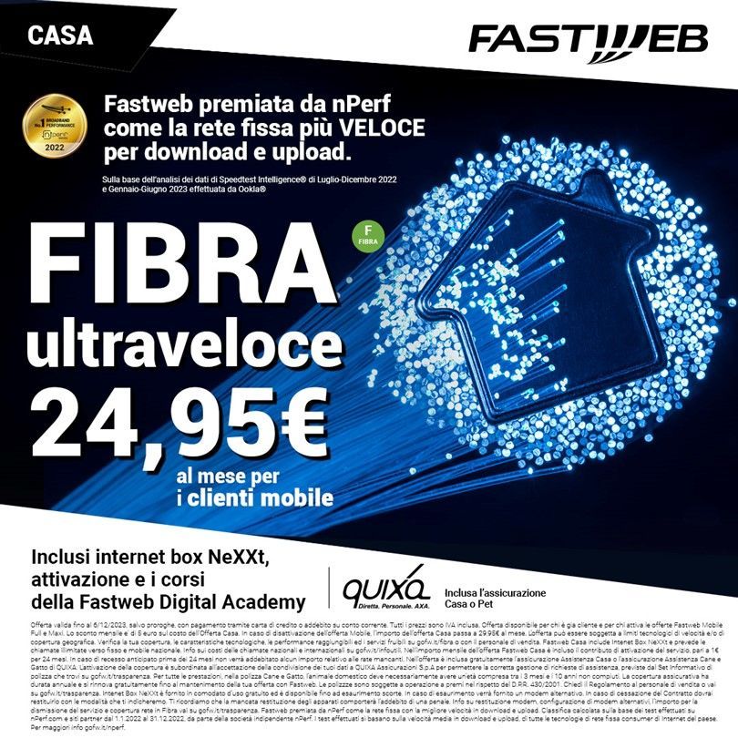Qui consigliamo Fastweb per i clienti molto esigenti, visto il suo impegno nel portare tutta l’Italia ad una nuova velocità.